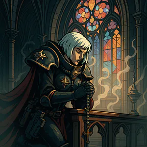 - ¿Qué imágenes capturan mejor la esencia de su papel dentro de las Adepta Sororitas (por ejemplo, fuego, luz, sacrificio)?